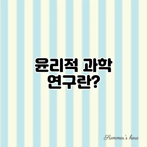윤리적 과학 연구란 연구자가 연구를 수행할 때 도덕적 원칙과 윤리적 기준을 준수하는 것을 의미합니다. 이러한 연구는 피험자의 권리와 안전을 존중하며, 진실성과 투명성을 유지하고, 결과에 대한 사회적 책임을 다해야 합니다.